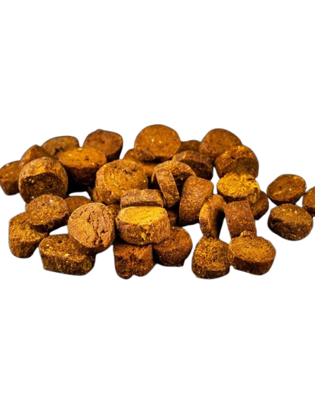 Cravin’ Cranberry Crunch Dog Treats could end up being a favorite in your house! What’s not to love cranberries and pumpkin plus a touch of raw Florida honey for a touch of sweetness! We also add organic turmeric which has anti-cancer benefits plus aids with inflammation. A two paws up treat!