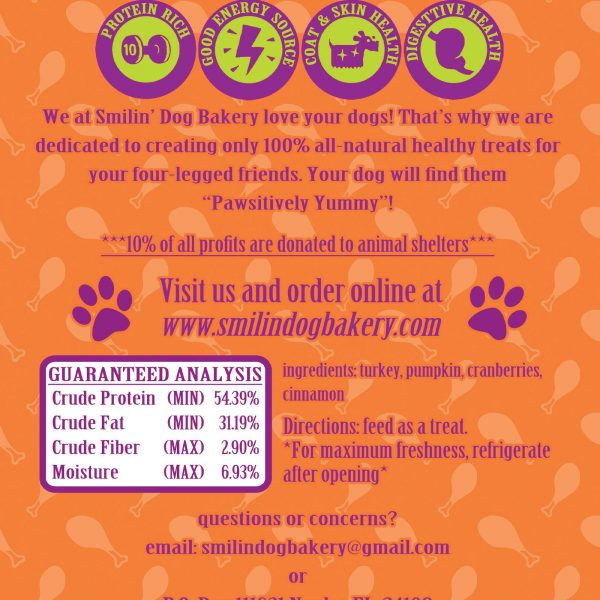 Ingredients: USDA turkey, cranberries, pumpkin, cinnamon